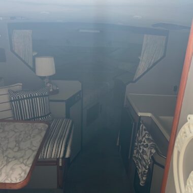 Interior cabin and bathroom are clean and presentable as-is.