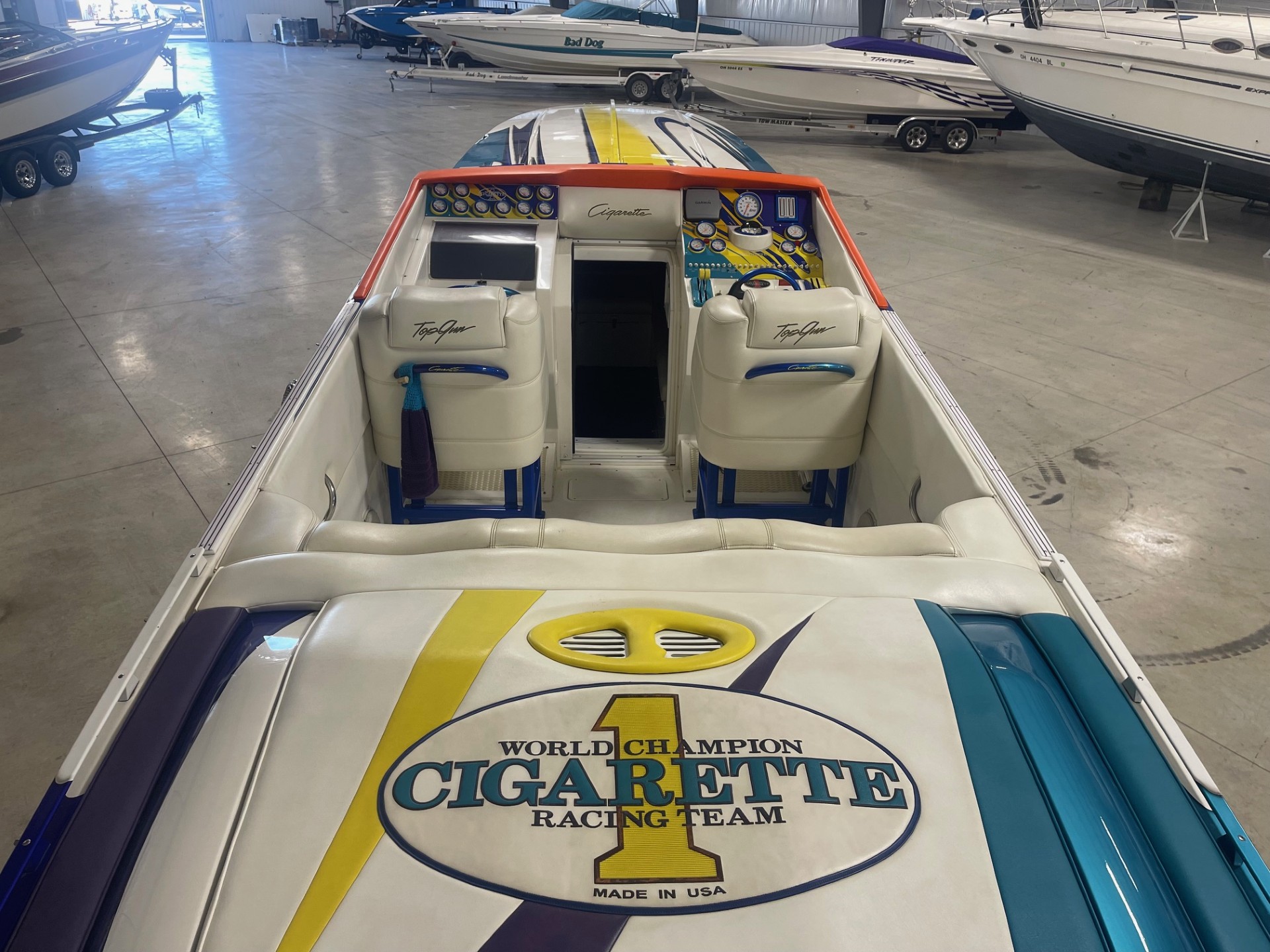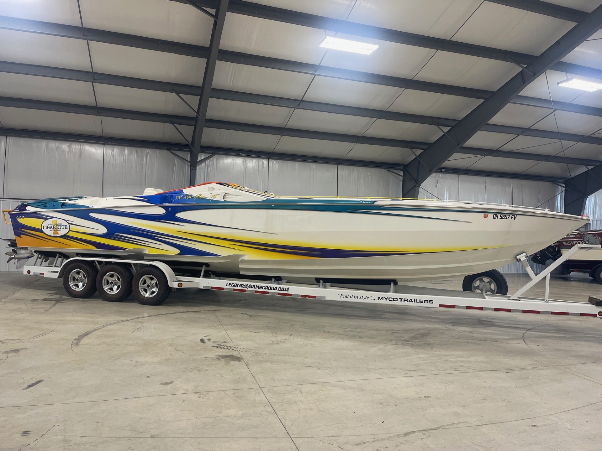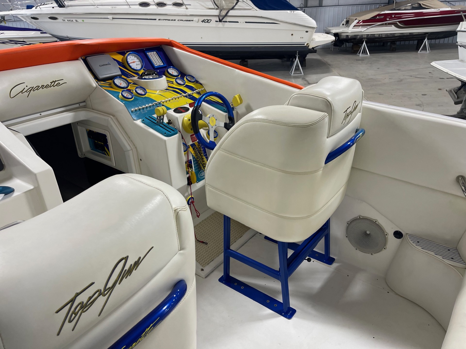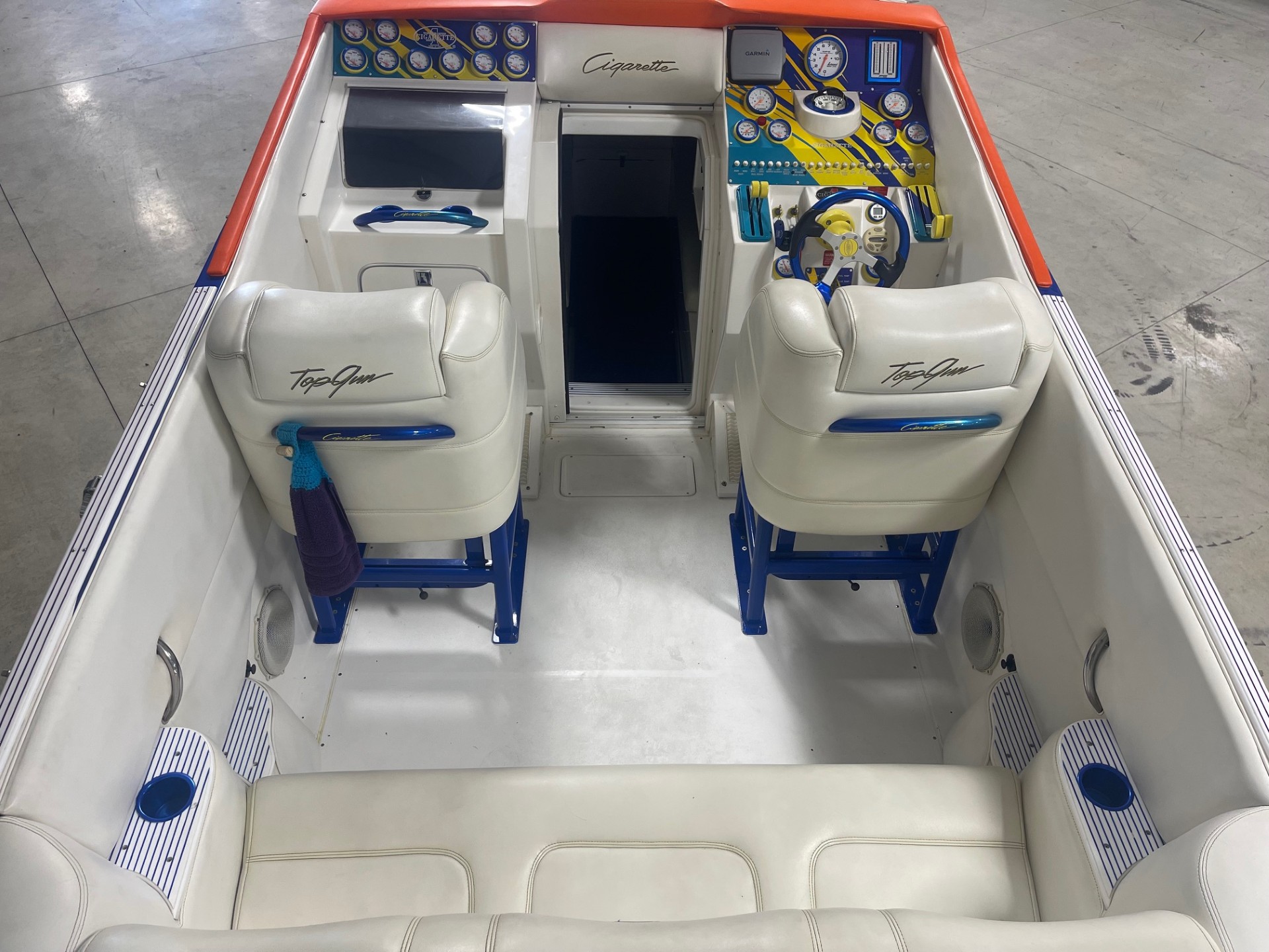 Get ready to own the water with this iconic 2002 Cigarette Racing 38 Top Gun. This boat is engineered for speed, performance, and style with top-notch features designed for the thrill-seeker in you.