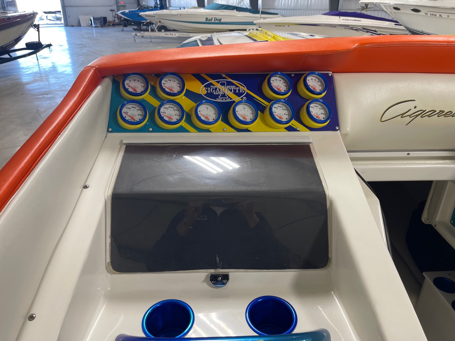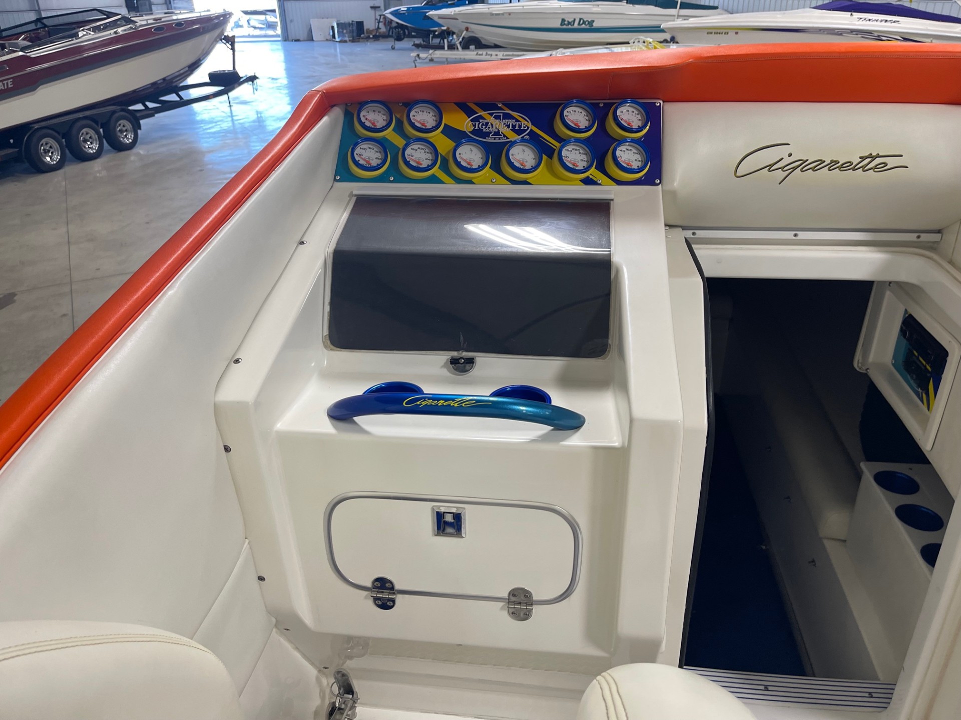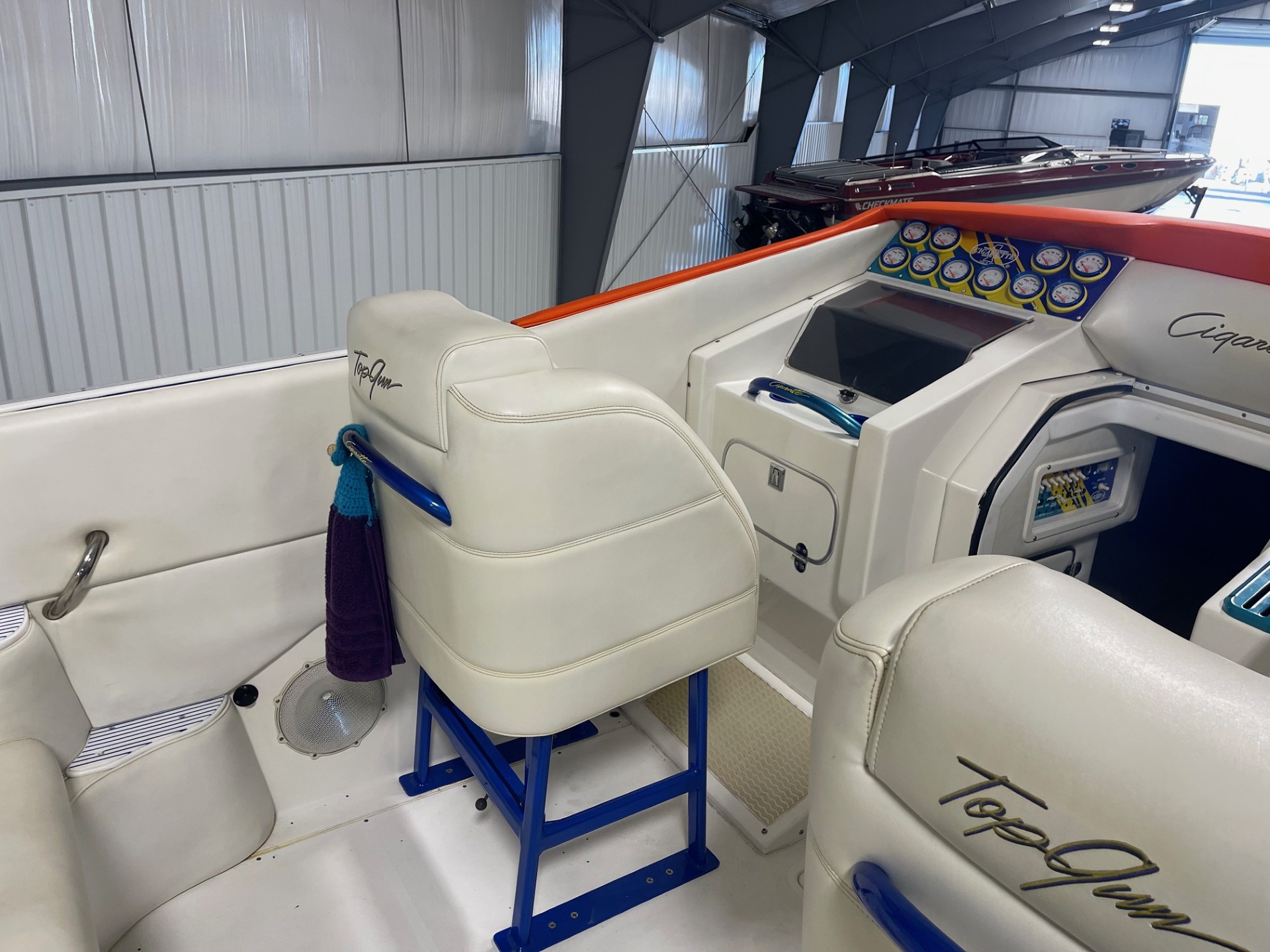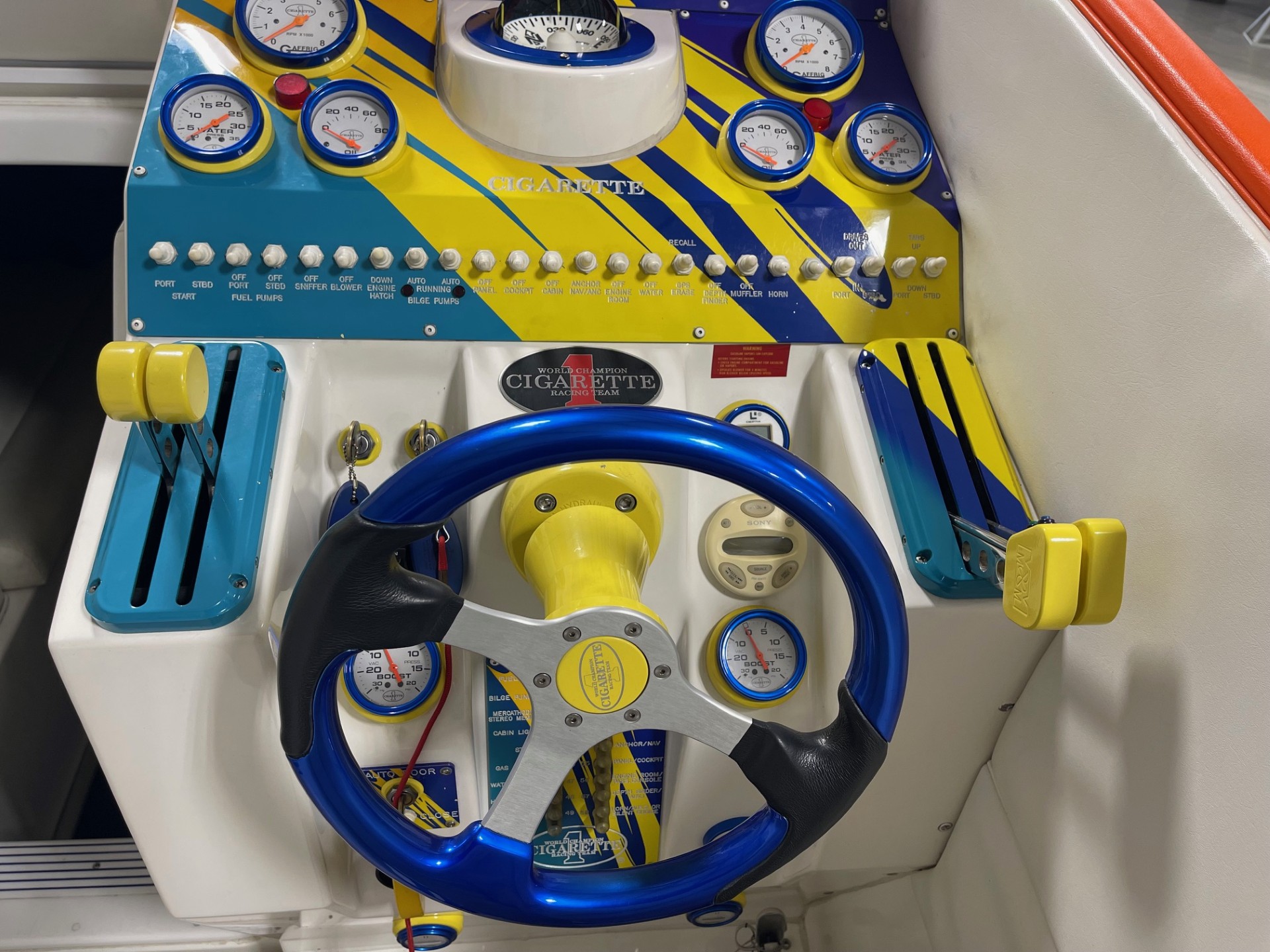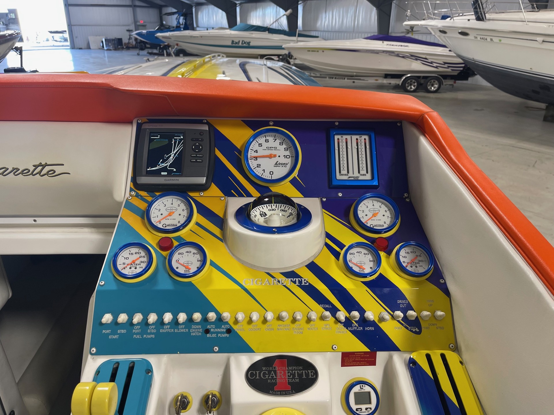 Get ready to own the water with this iconic 2002 Cigarette Racing 38 Top Gun. This boat is engineered for speed, performance, and style with top-notch features designed for the thrill-seeker in you.