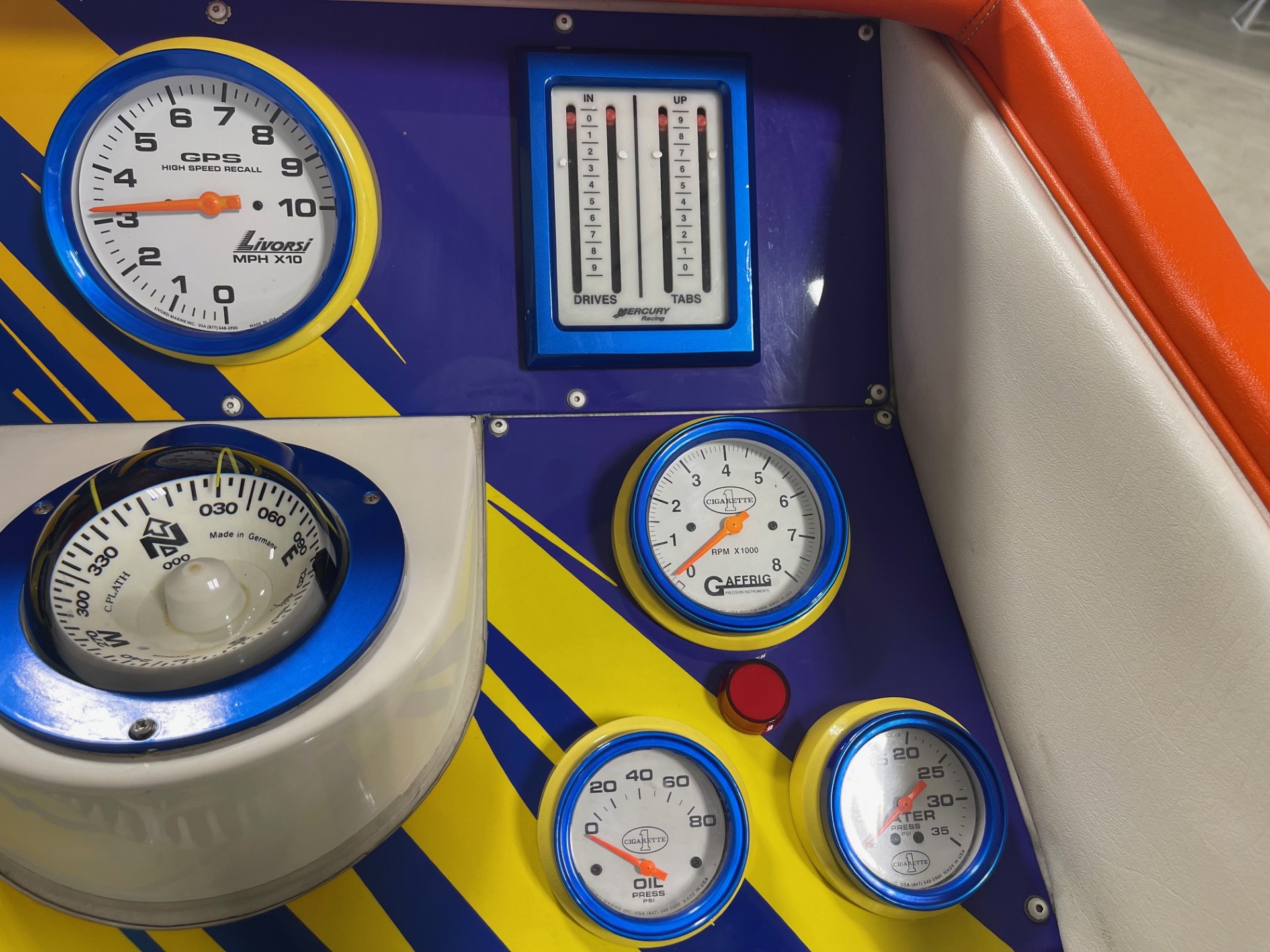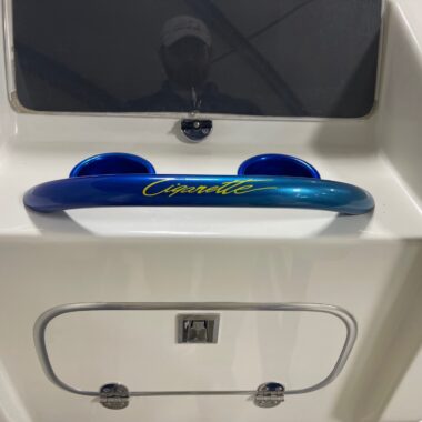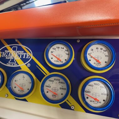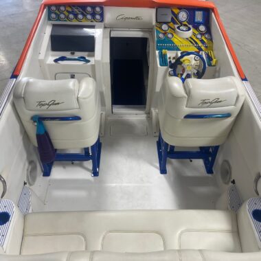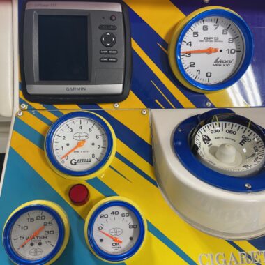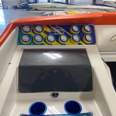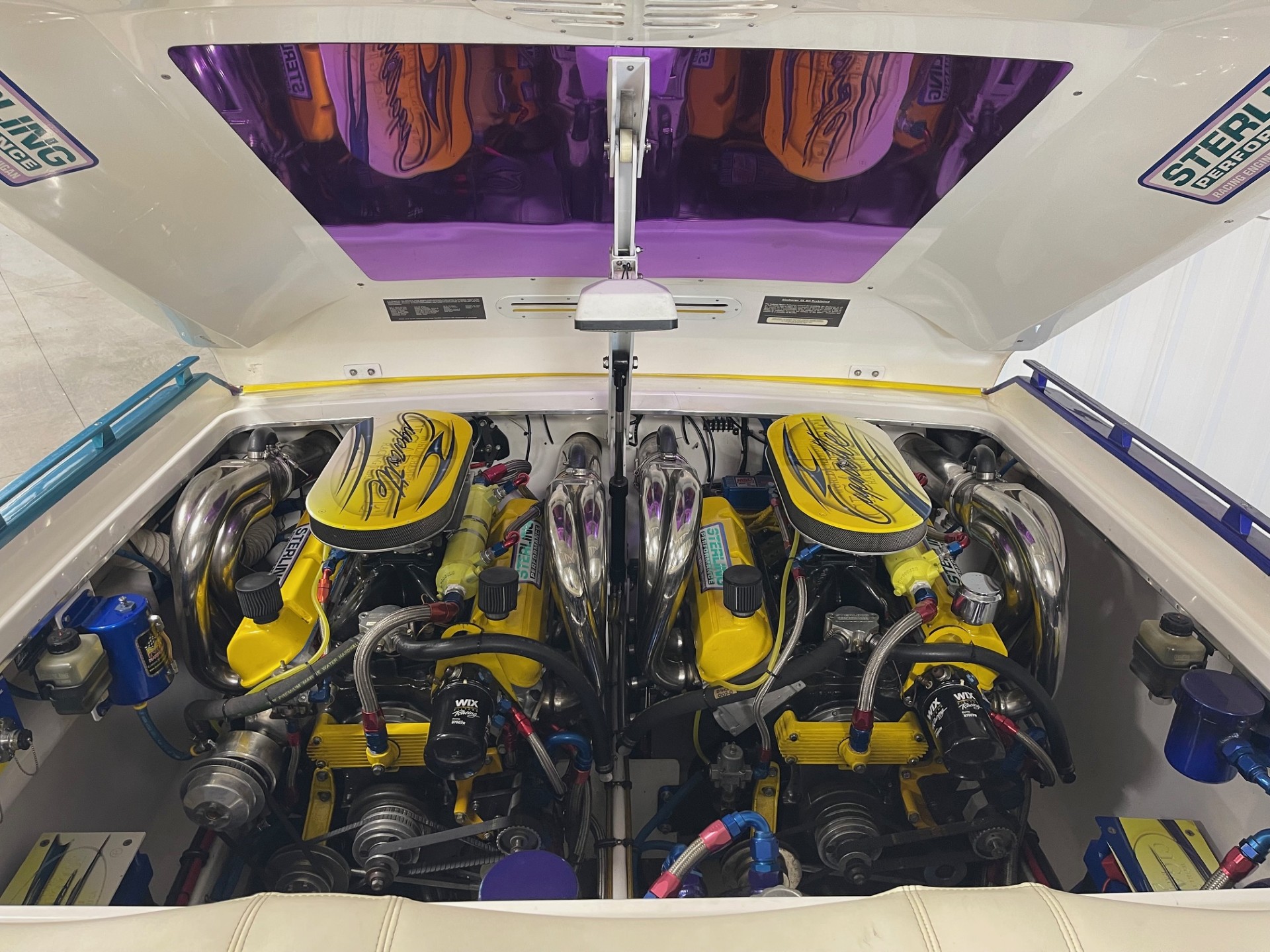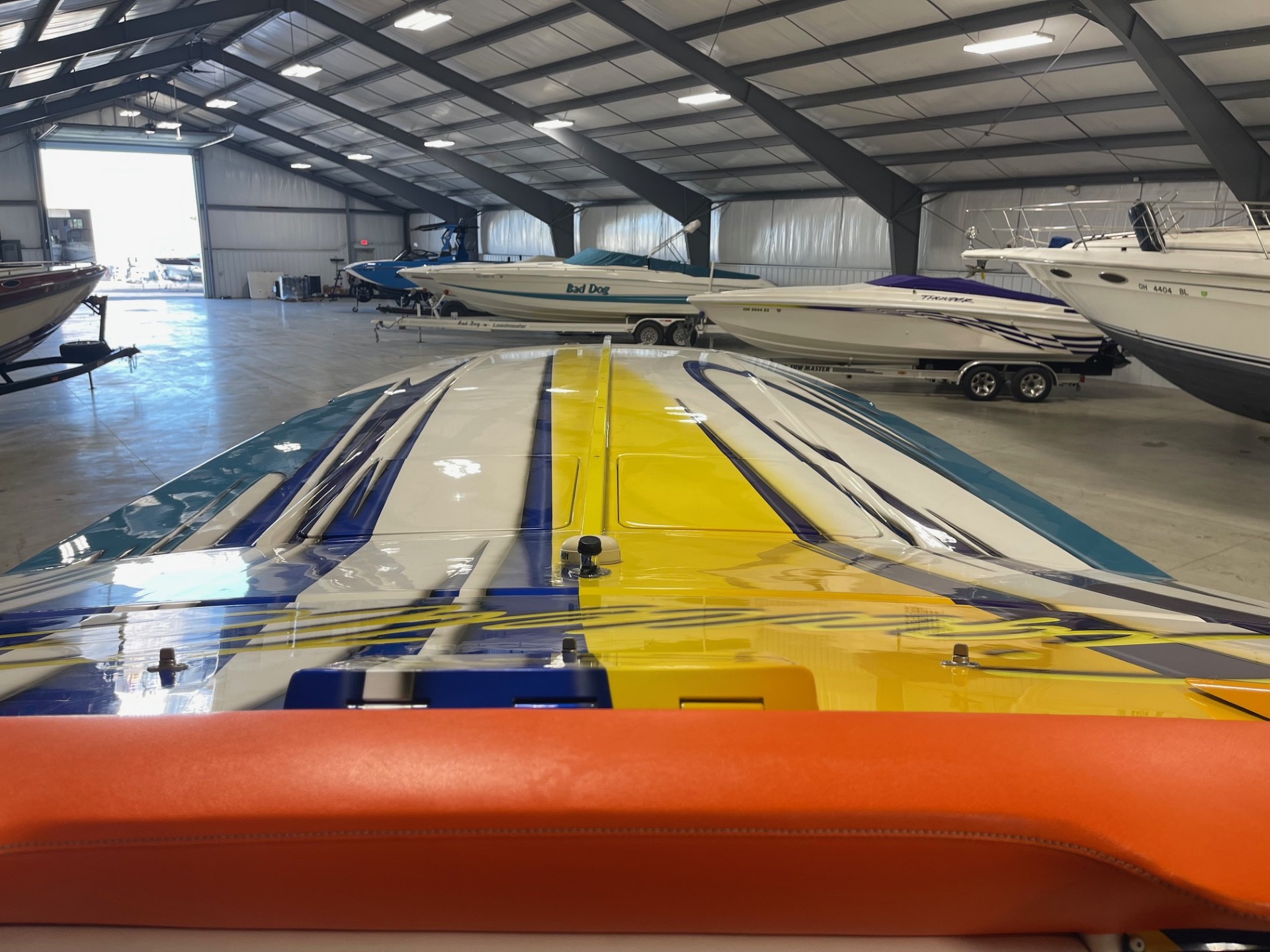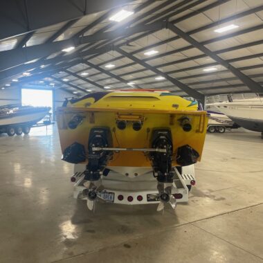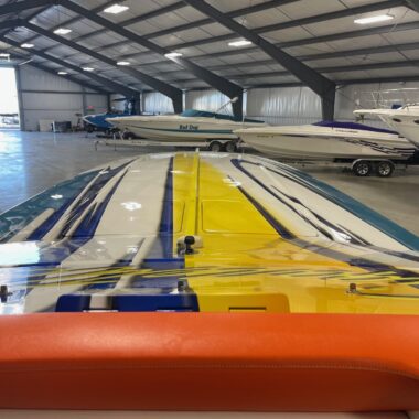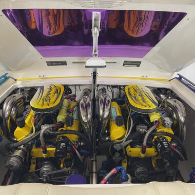 Not only is this 38 Top Gun a performer, but it also turns heads with custom paintwork throughout, making it as stylish as it is fast. It’s equipped with a Myco custom triple-axle trailer, perfect for secure and easy transportation wherever your next adventure takes you.