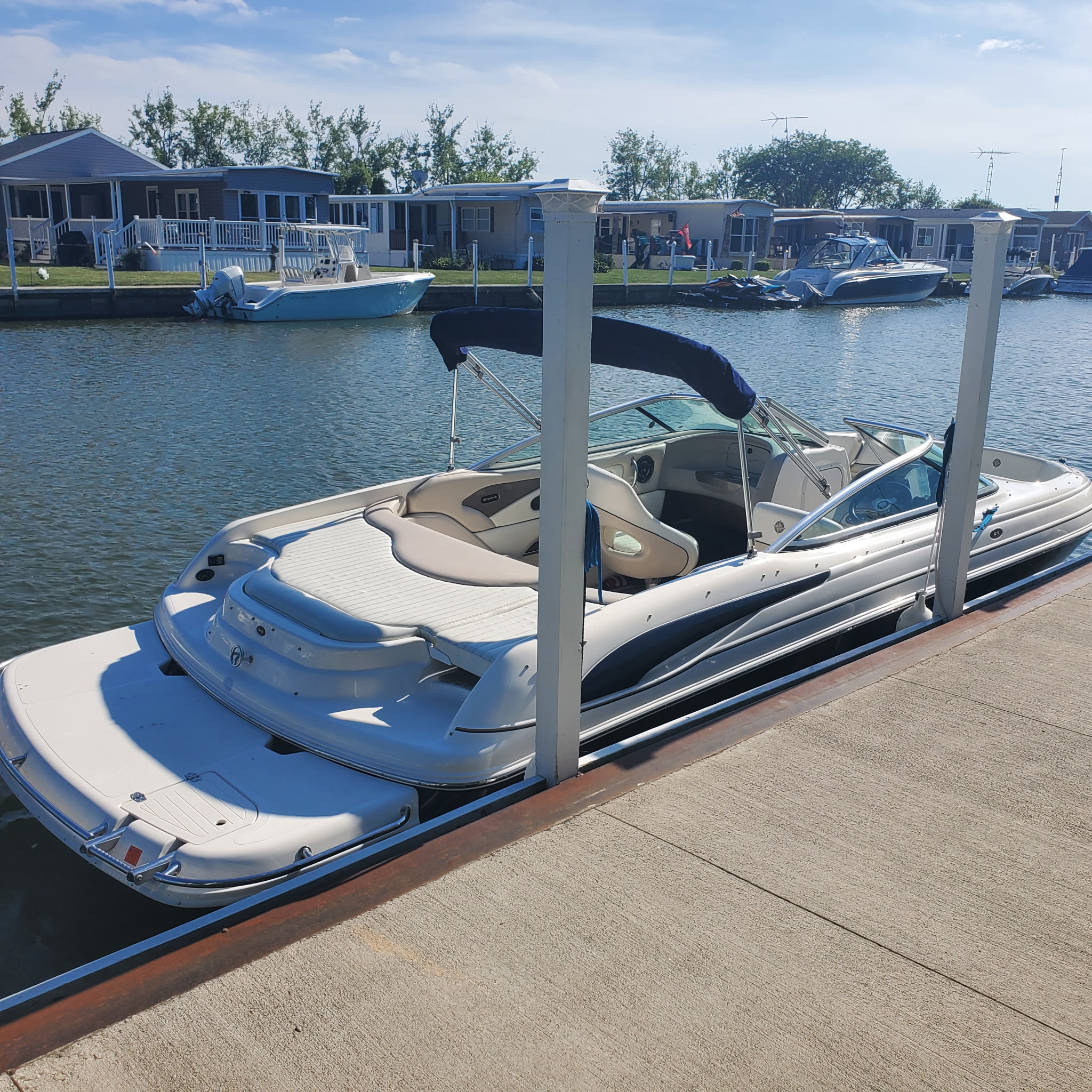 At 21’9” in length, the 219 offers the perfect balance of sporty performance and family-friendly comfort. Its deep-V hull design provides a soft, stable ride even in choppier conditions, while still delivering responsive handling for cruising, tubing, or watersports.