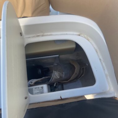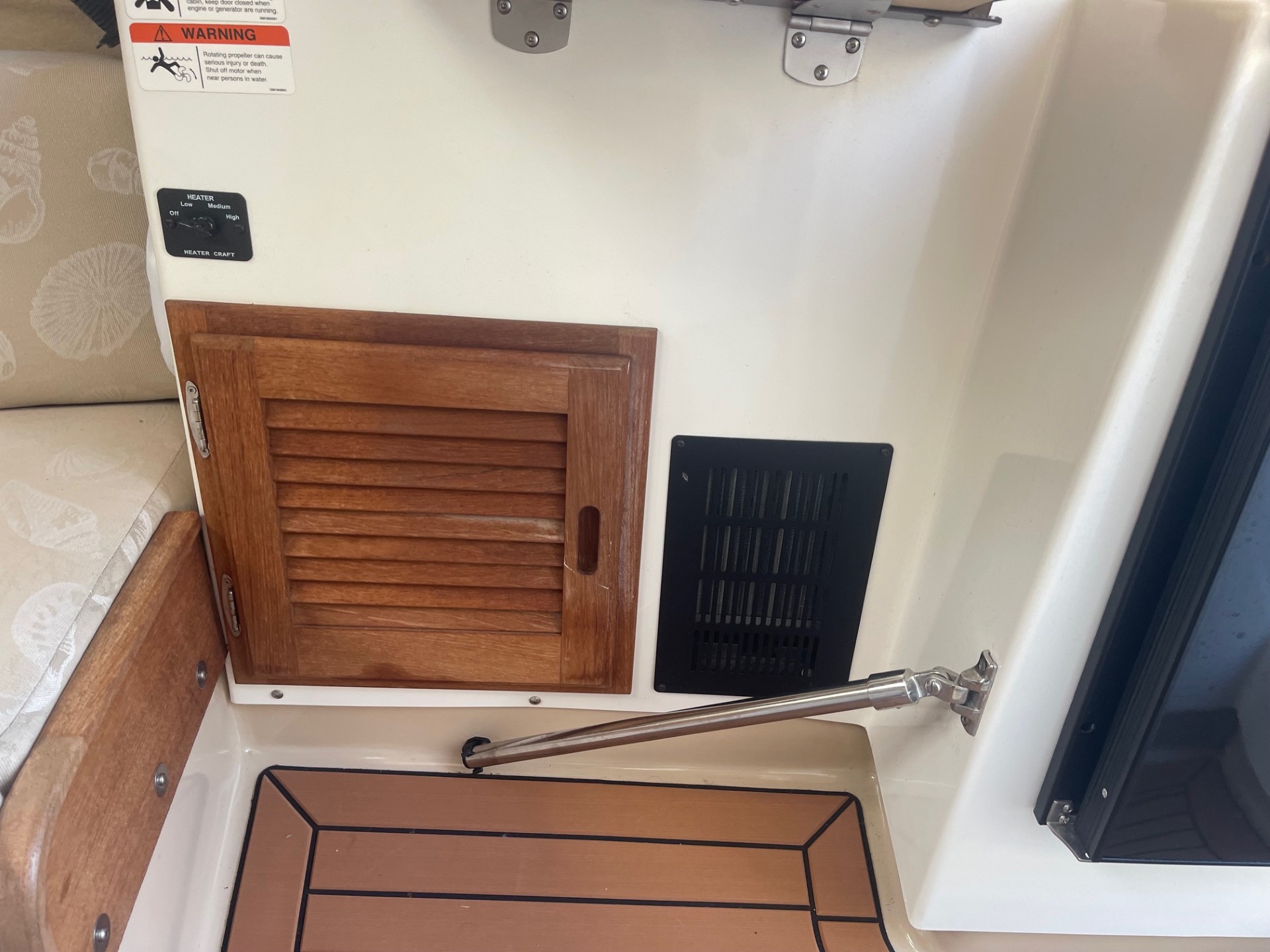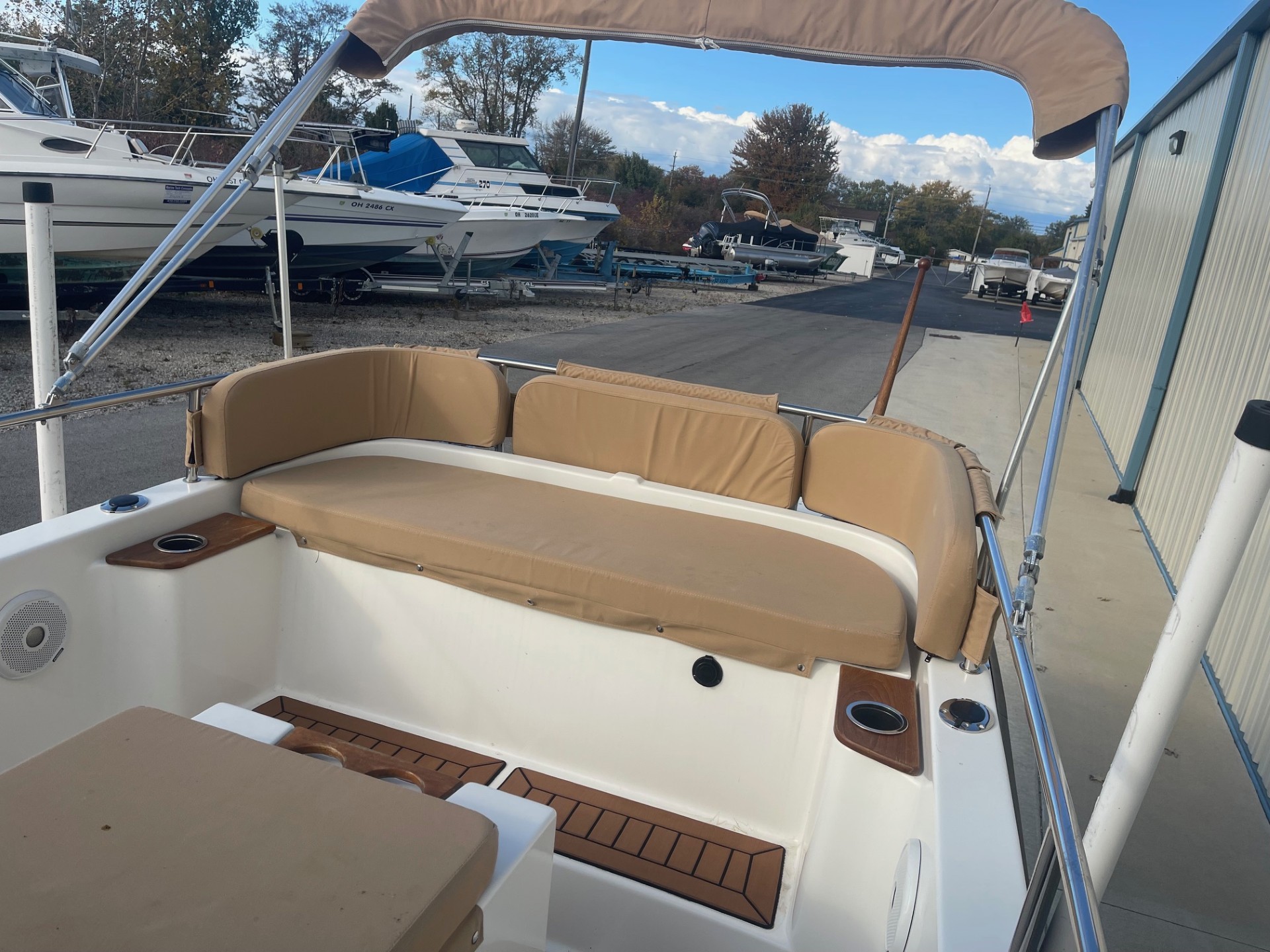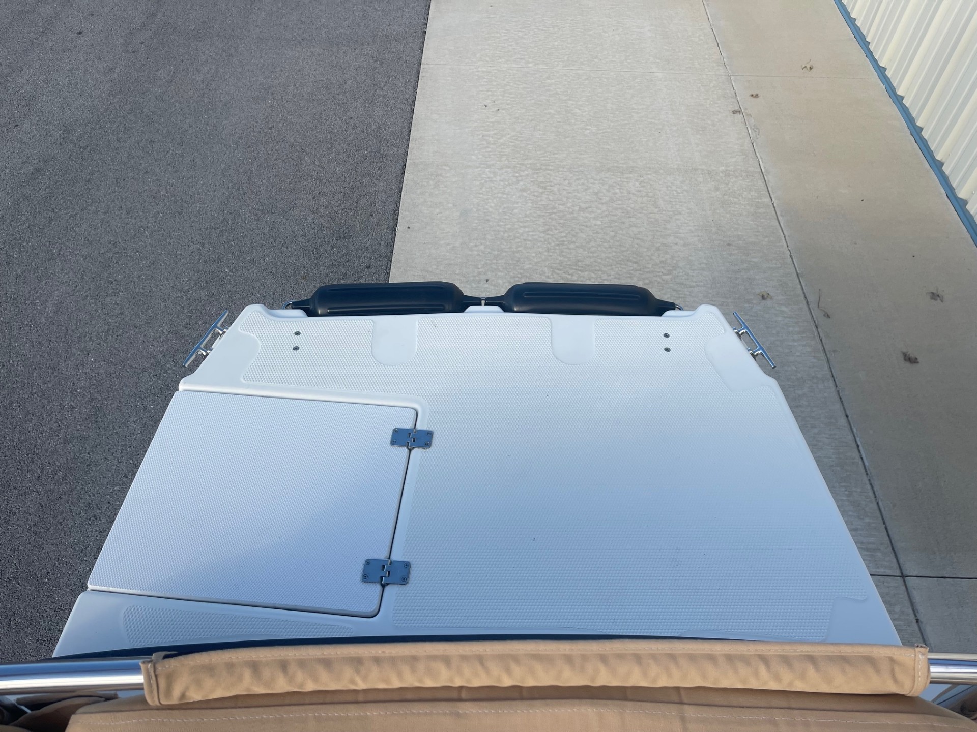 Cockpit: Spacious aft cockpit ideal for fishing, lounging, or docking; features removable seating and easy access to engine compartment.
