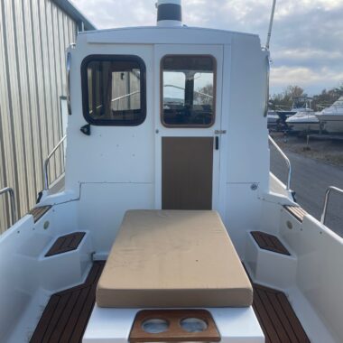 The semi-displacement hull design delivers exceptional stability and efficiency, cruising comfortably at 6–7 knots and reaching a top speed near 9 knots. The full keel and protected running gear make it ideal for shallow water cruising, while its compact footprint and trailerable design offer unmatched flexibility.