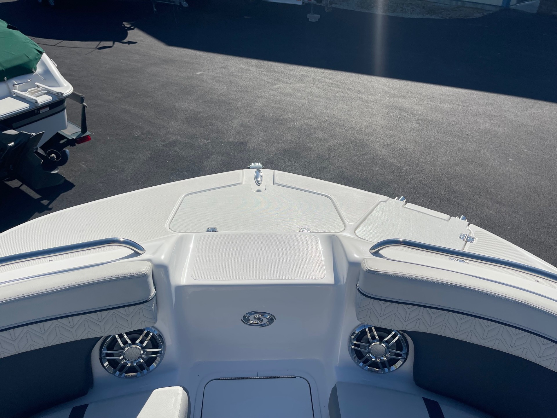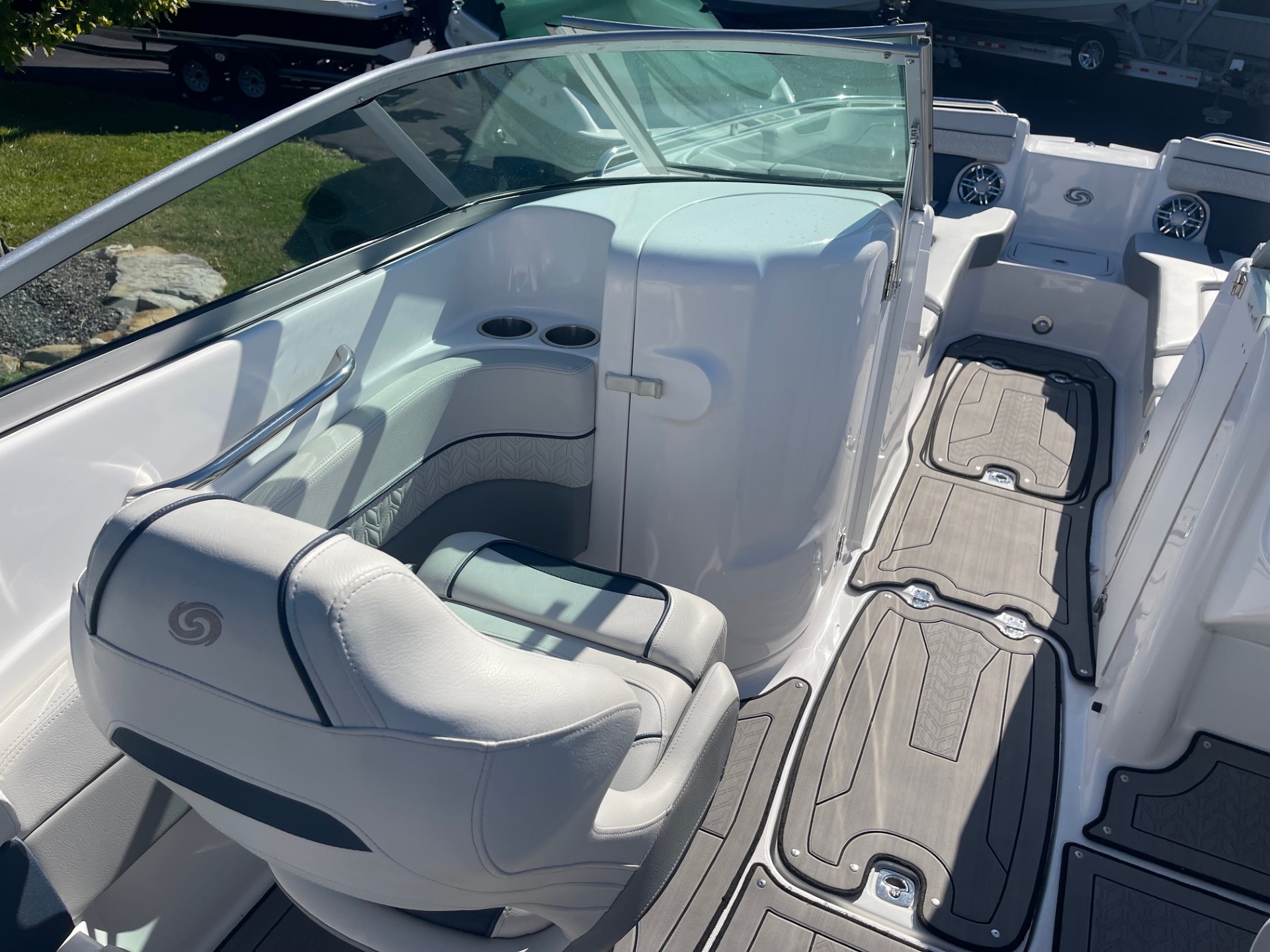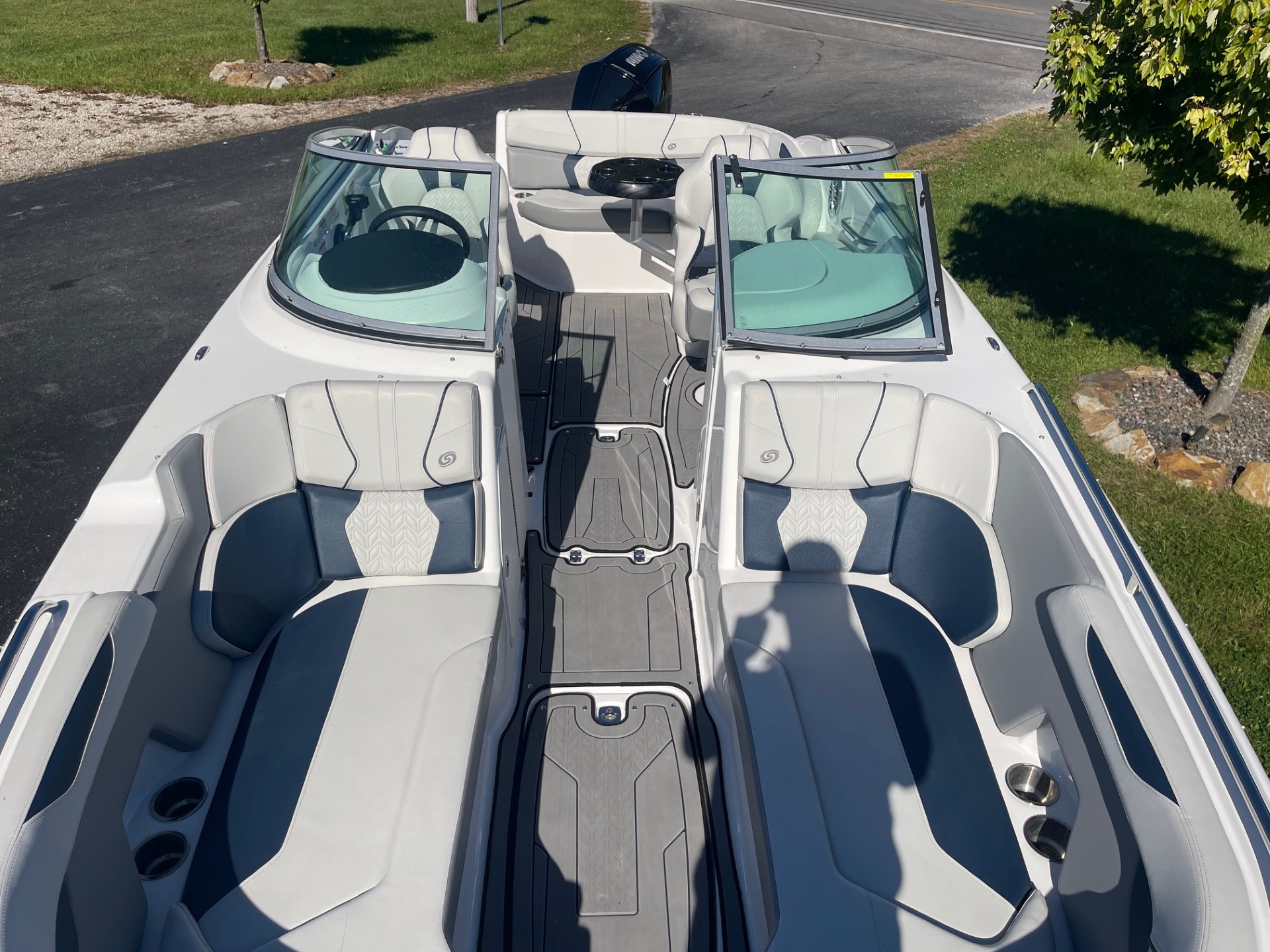 At 24 feet long with an 8’6” beam, this model is designed with families and groups in mind. It features wraparound seating, multiple boarding points, and an open cockpit that allows everyone to spread out comfortably. Ample storage ensures you can bring all your gear along without cluttering the deck.