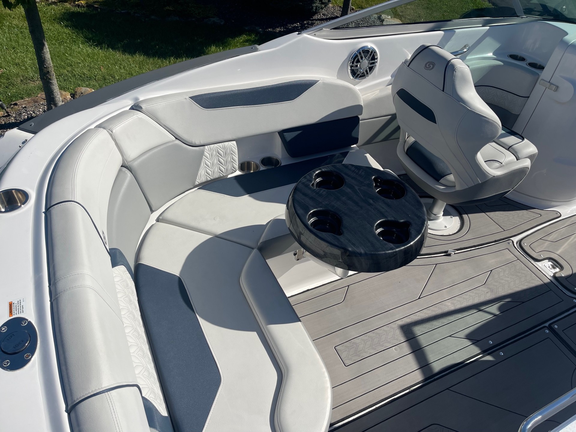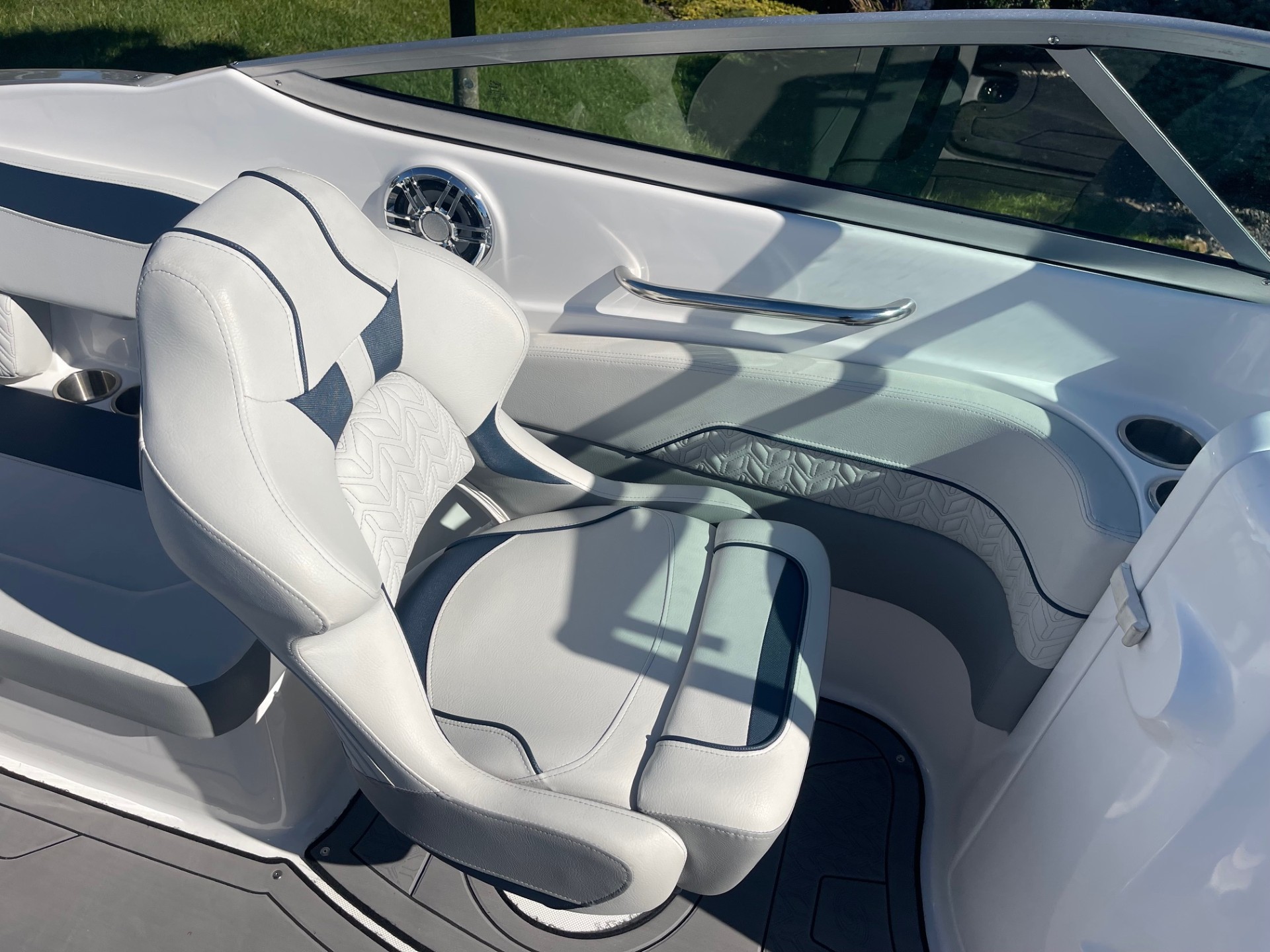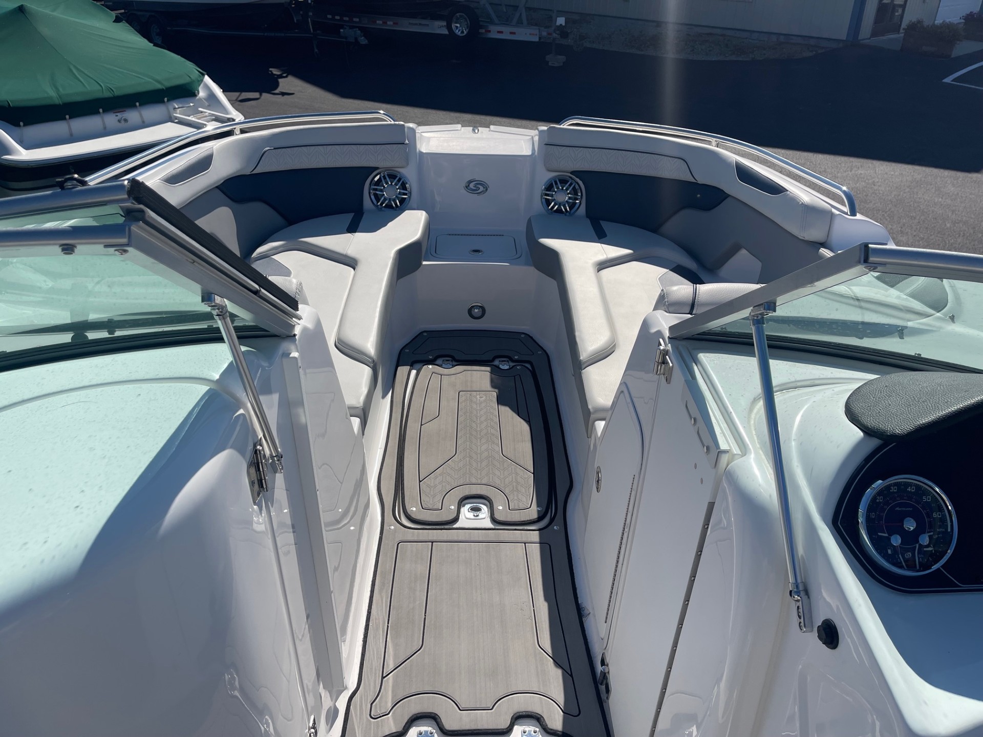 At 24 feet long with an 8’6” beam, this model is designed with families and groups in mind. It features wraparound seating, multiple boarding points, and an open cockpit that allows everyone to spread out comfortably. Ample storage ensures you can bring all your gear along without cluttering the deck.