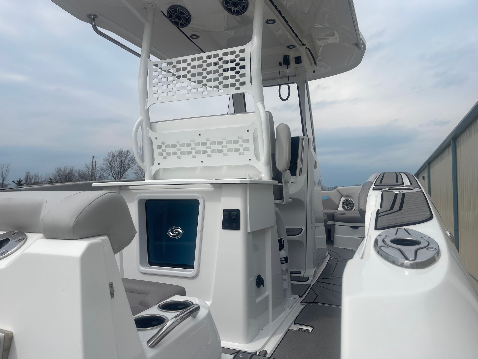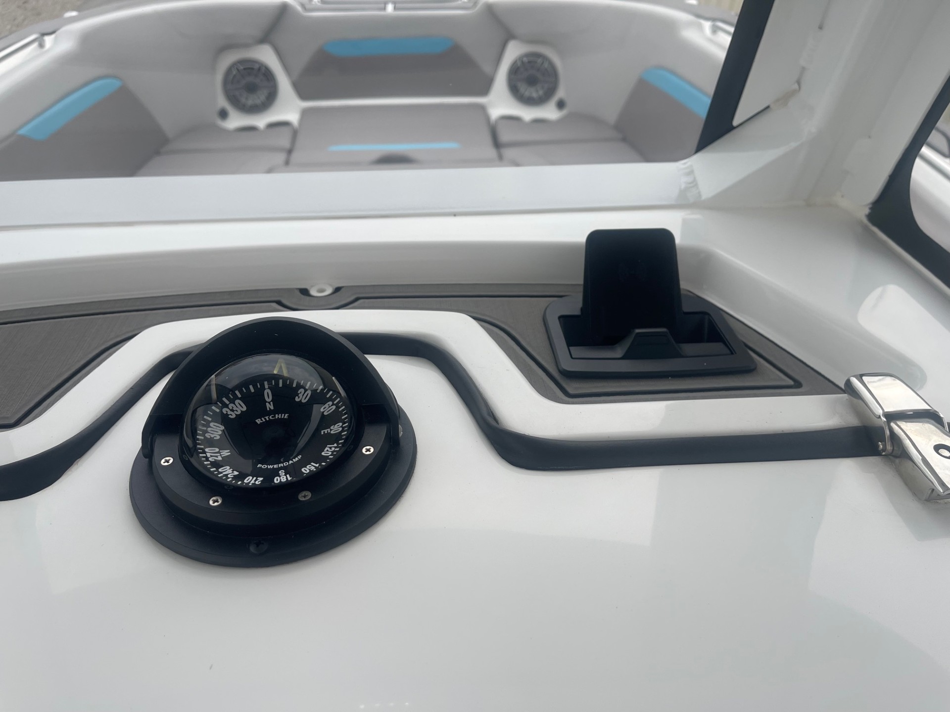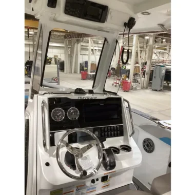 The helm is fully outfitted for serious navigation, safety, and entertainment — designed for both seasoned captains and weekend cruisers.