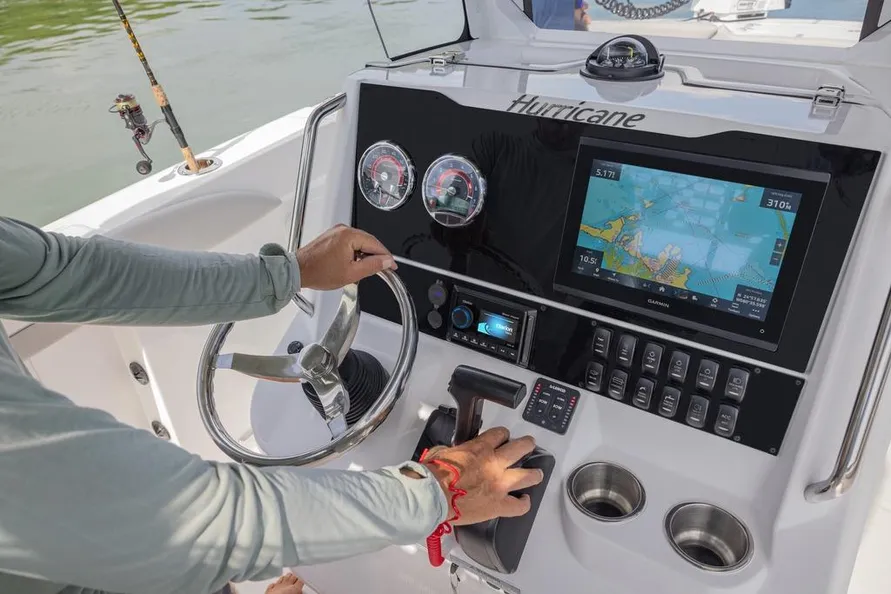 Built on Hurricane’s saltwater-ready deep-V hull, this boat is engineered for smooth handling in choppy coastal conditions while maintaining excellent fuel efficiency and stability at rest.