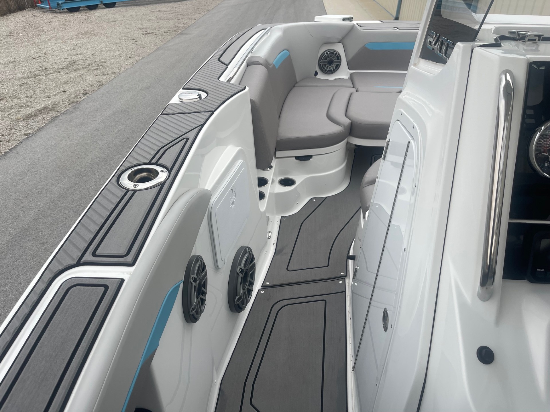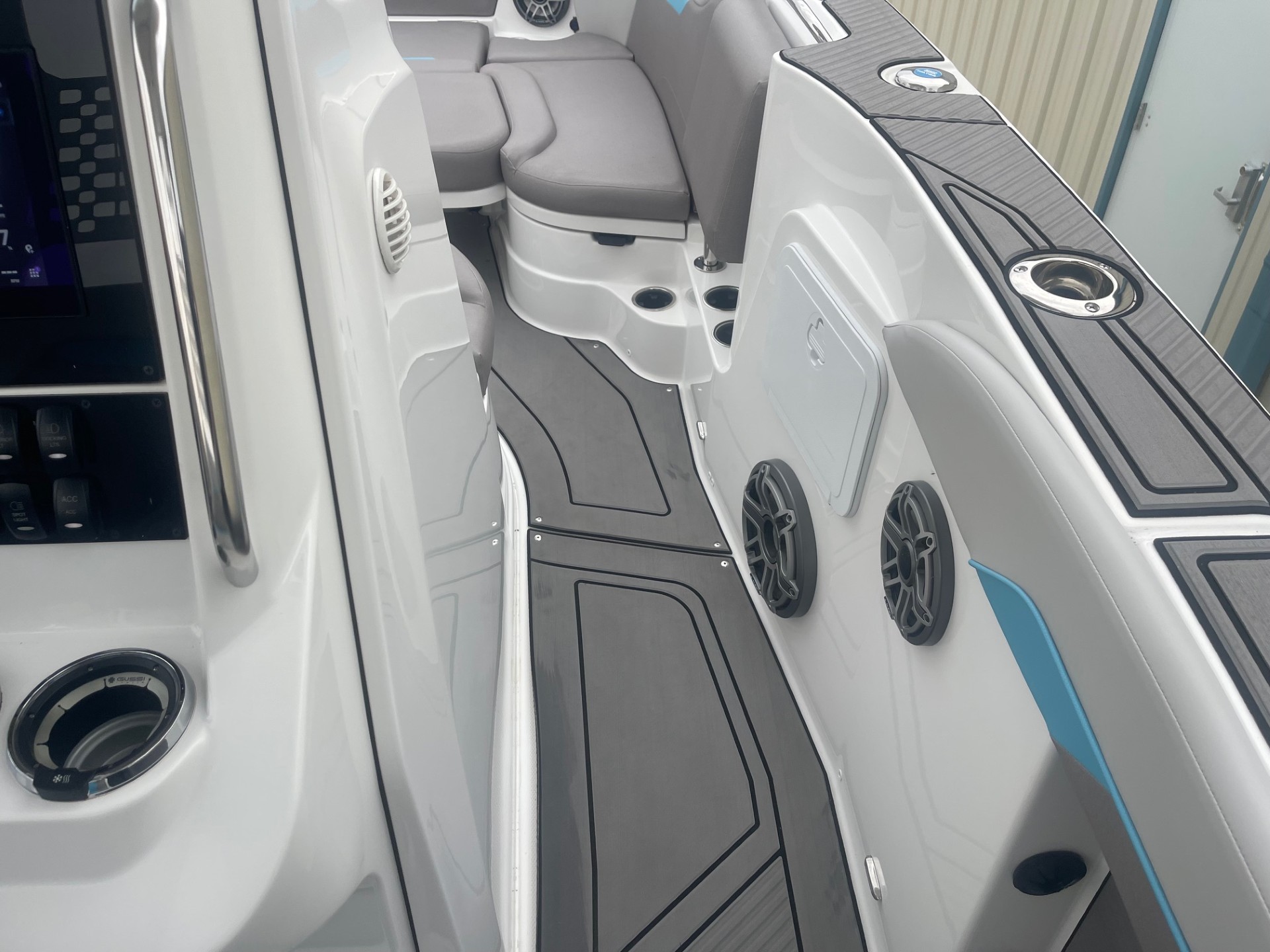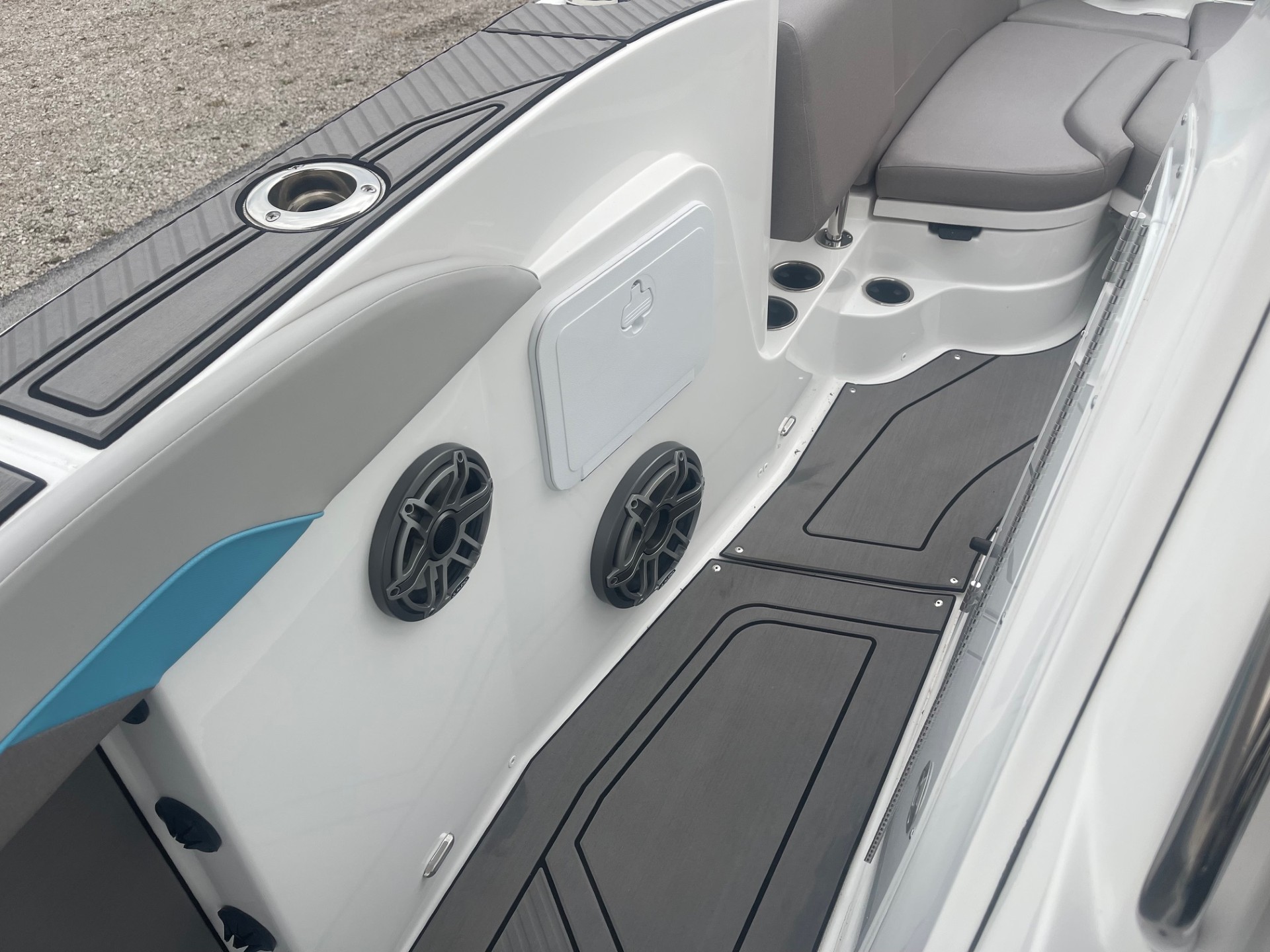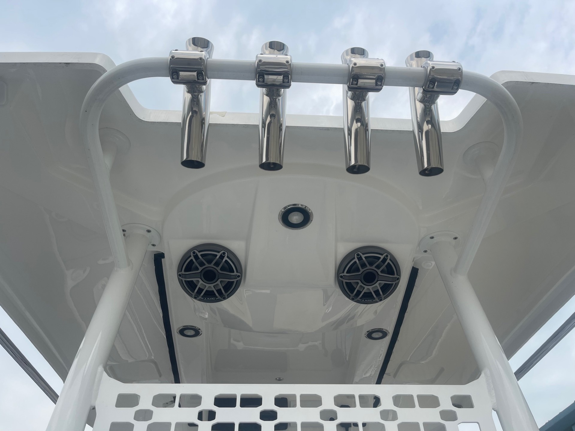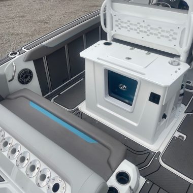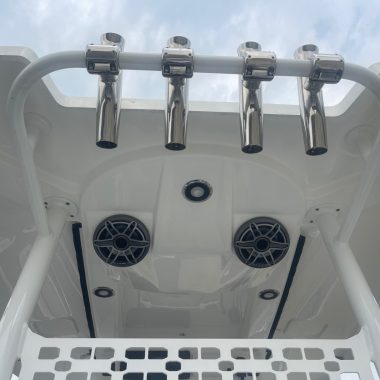 This boat is equipped with a high-output, marine-grade JL Audio Ultimate Sound System designed for crystal-clear sound even at cruising speed.
