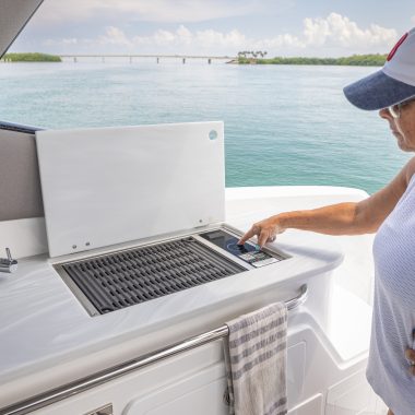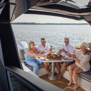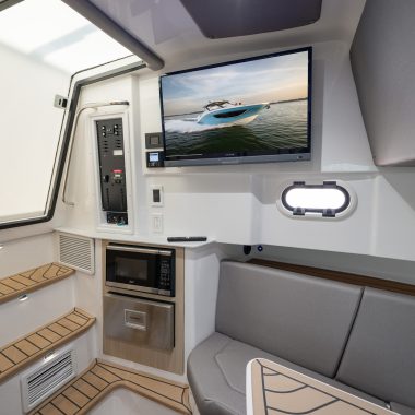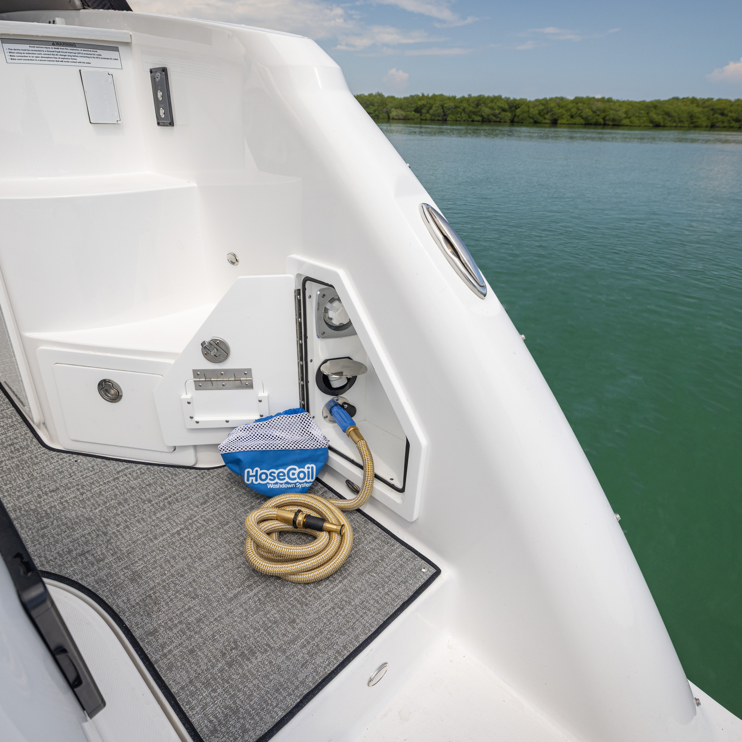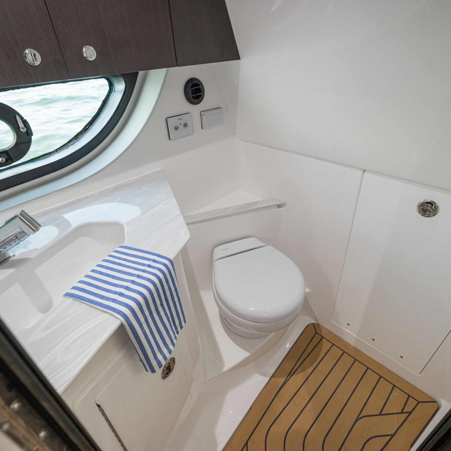 Loaded with features, this model includes an enclosed head compartment, freshwater system, ample storage throughout, and a large swim platform for easy water access. Every detail is designed to make long days on the water more enjoyable.